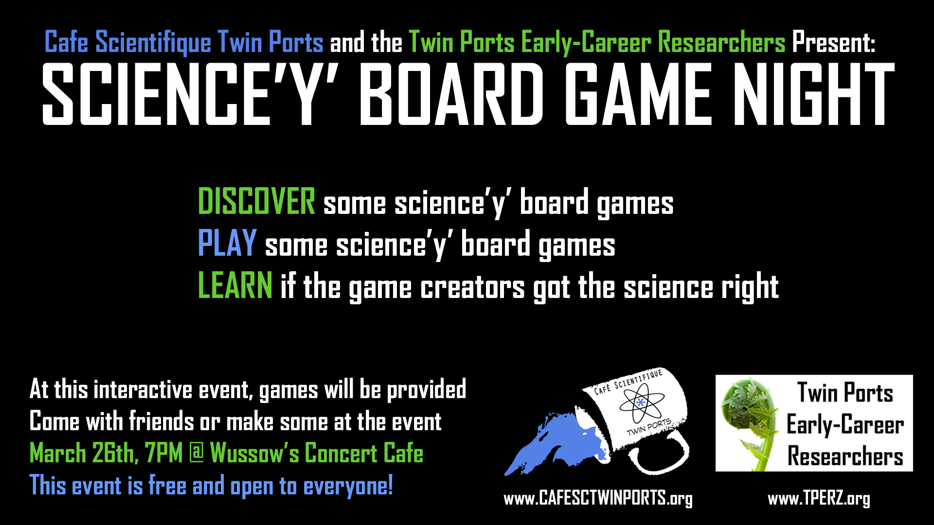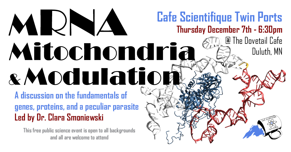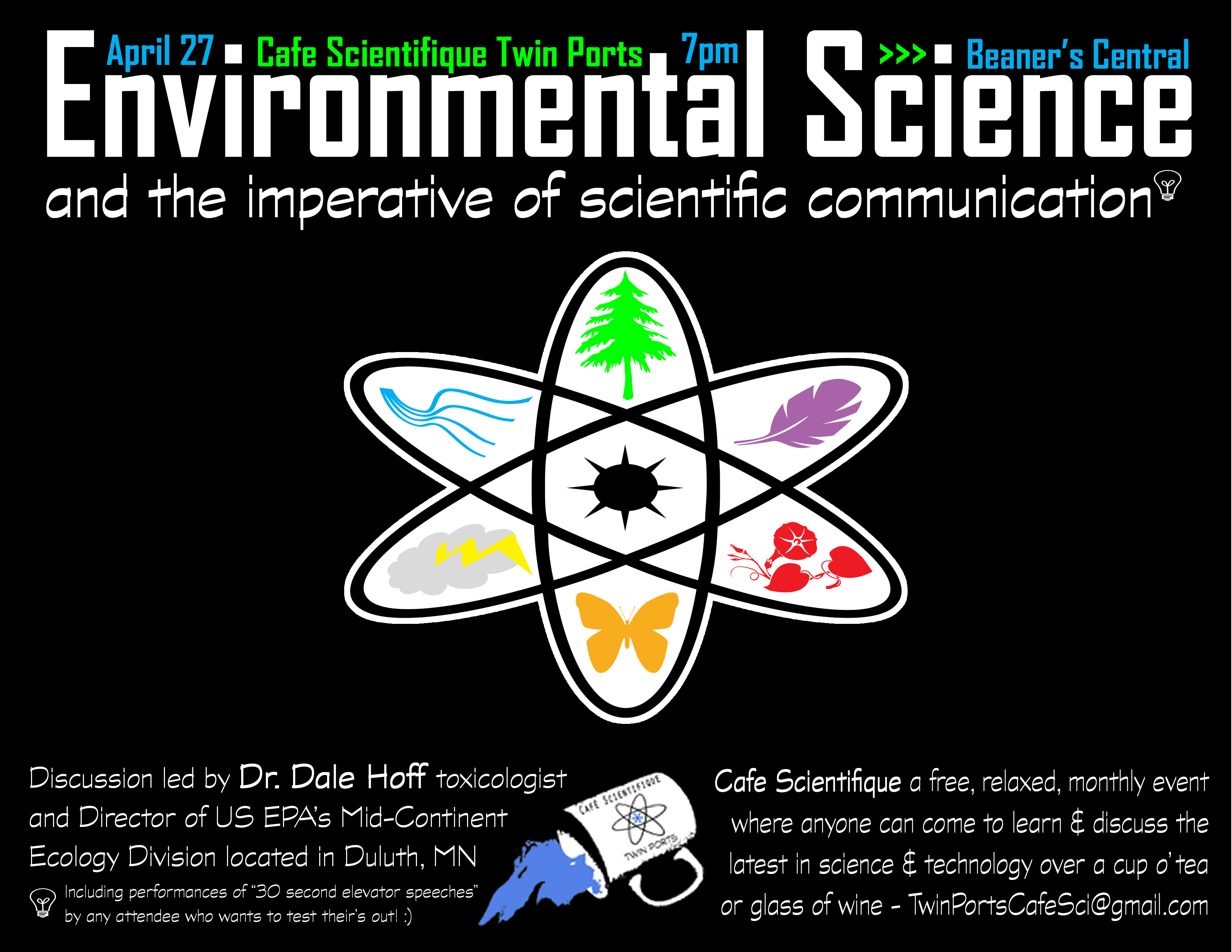 If you are interested in sharing your science through Cafe Scientifique Twin Ports, send a note to info@cafescitwinports.org and let us know! We are working on developing a variety of ways in which the scientists in our area can connect with their community.
