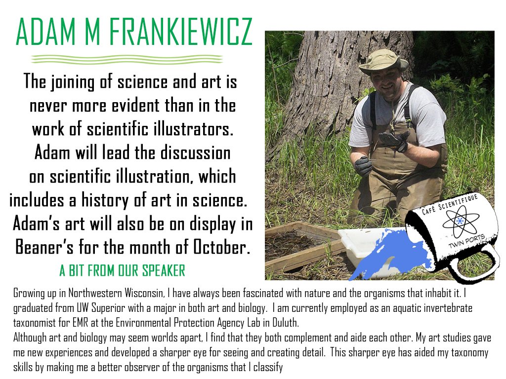 September, 2017: Adam M Frankiewicz, The Art of Scientific Illustration (October 5th, combined discussion and art opening)
