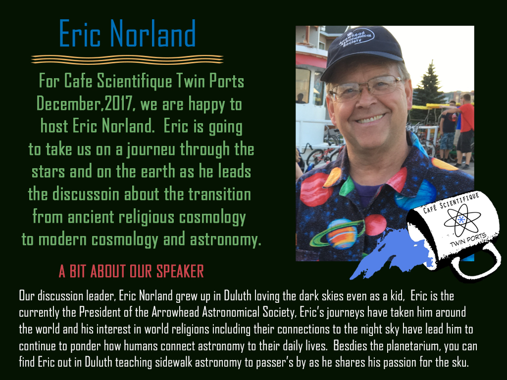 December, 2017: Eric Norland, From Ancient Religion to Modern Cosmology