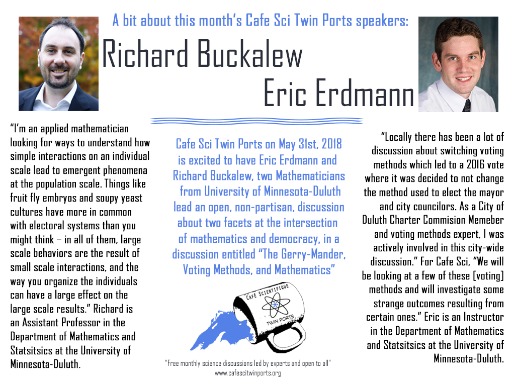 May, 2018: Richard Buckalew and Eric Erdmann, The Gerry-Mander, Voting Methods, and Mathematics