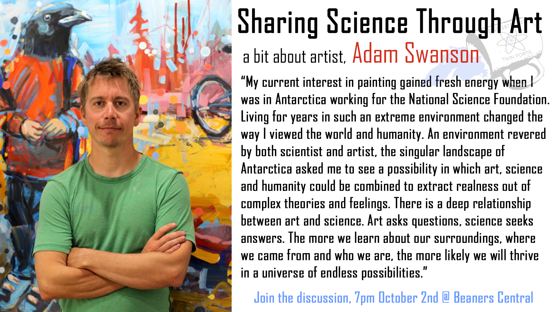 September (Oct 2nd), 2018: Adam Swanson, Sharing Science Through Art