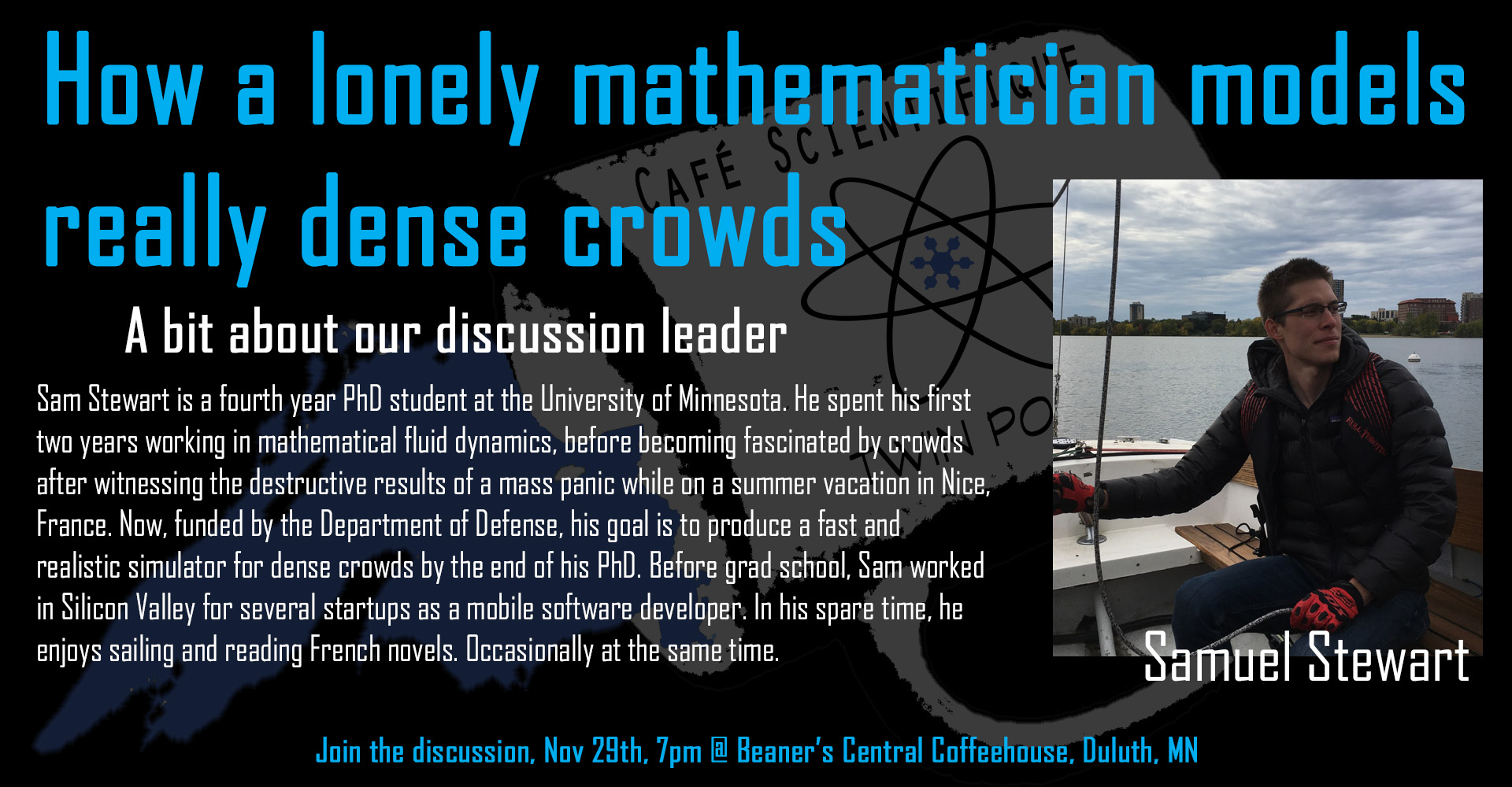 November, 2018: Samuel Stewart, How a lonely mathematician models really dense crowds