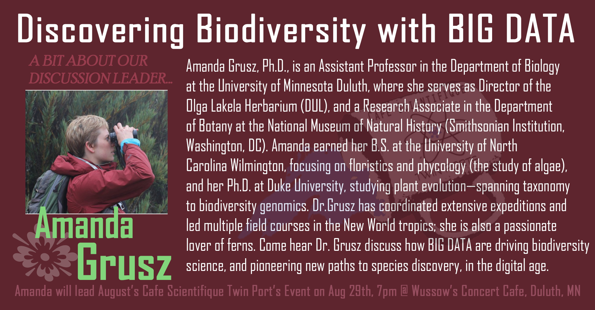 August, 2019: Amanda Grusz, Discovering Biodiversity with BIG data