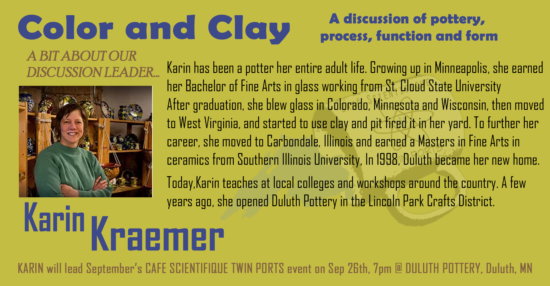 Sept, 2019: Karin Kraemer, Color and Clay