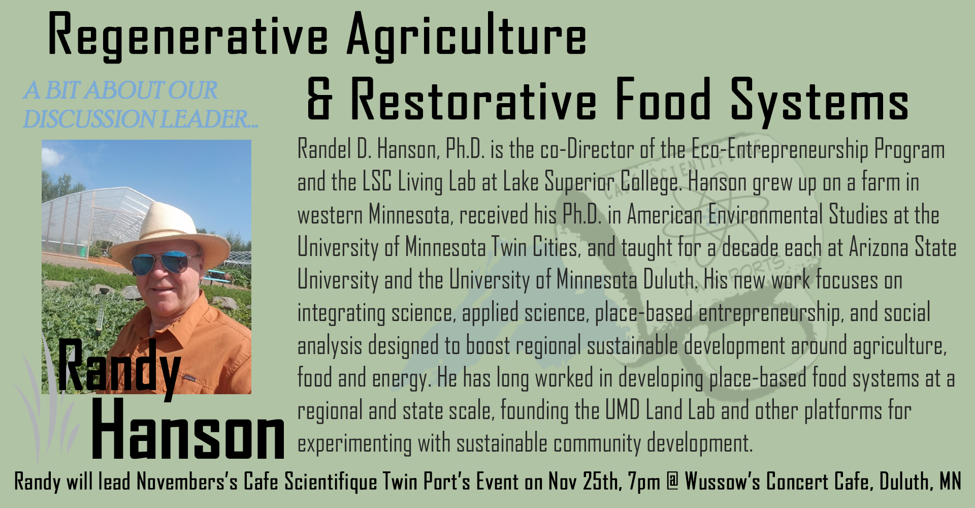 Nov, 2019: Randy Hanson, Regenerative Agriculture & Restorative Food Systems
