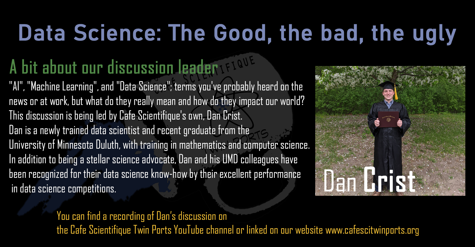 July, 2020: Dan Crist, Data science: The good, the bad, the ugly (Link to recording)